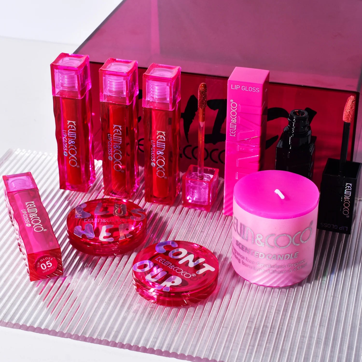 - Glossy Lips: Five lip glosses in various shades provide endless shine and color options.